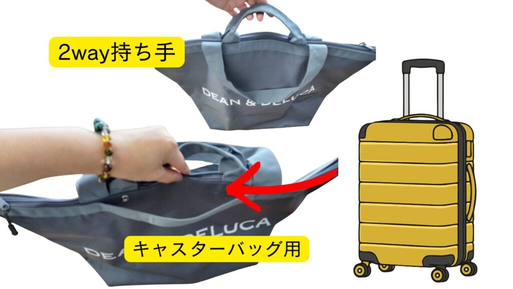 裏に金具ついてるのが好きだけど、キャスターバッグに載せるからつけられないのとたたんだ時にかさばるからつけれないかな~と思う。