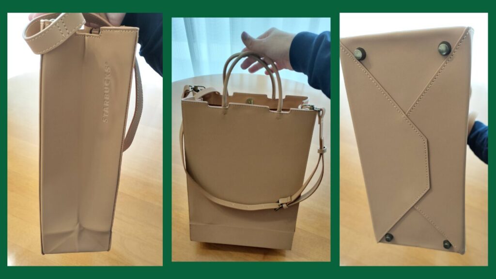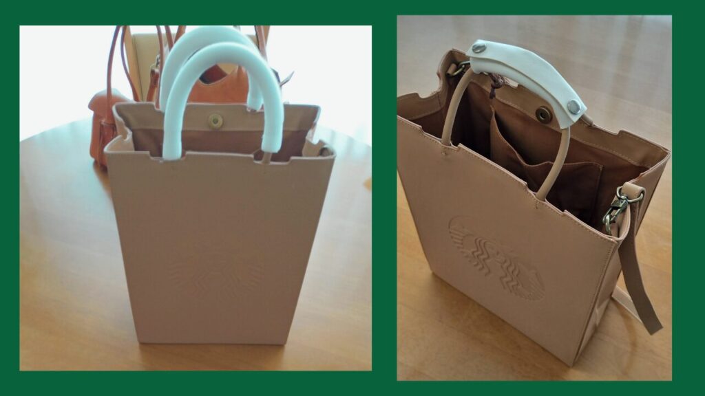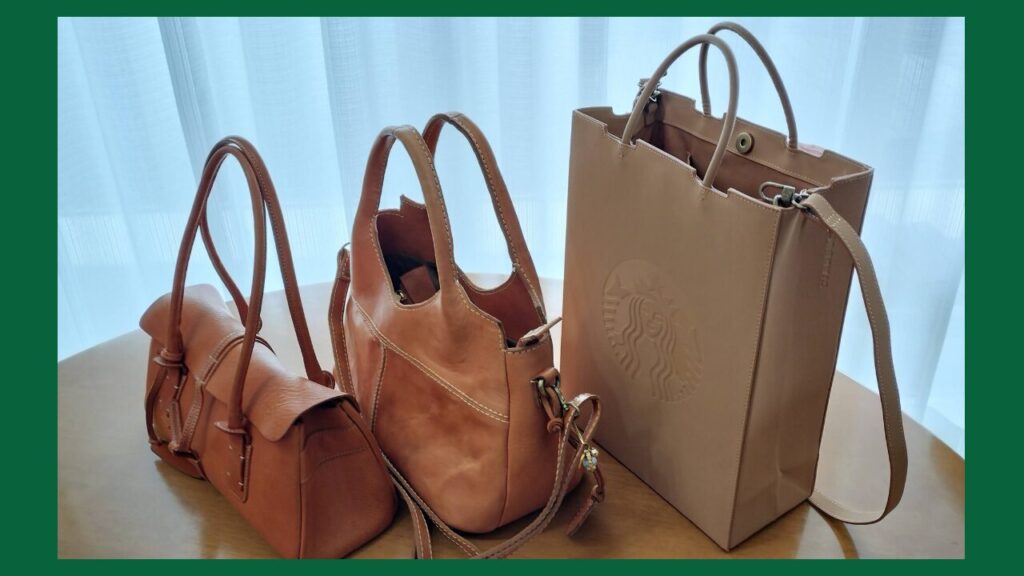 スターバックスのショッピングバッグから着想を得た、洗練されたレザートートバッグ